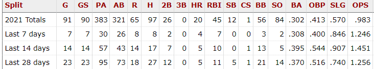 Bryce is currently slashing .302/.413/.570 with a .983 OPS